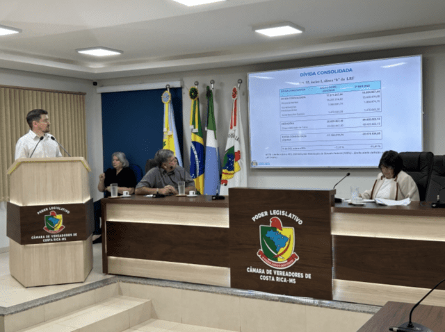 A Câmara Municipal de Costa Rica realizou na manhã da quinta-feira (12), às 8h, Audiência Pública no Plenário das Deliberações “Vereador Simino Jorge de Oliveira”, com a presença de representantes do Executivo, para apresentação do Relatório de Gestão Fiscal (RGF) referente ao segundo semestre de 2025. O objetivo foi avaliar o cumprimento das metas fiscais e assegurar transparência na aplicação dos recursos públicos.