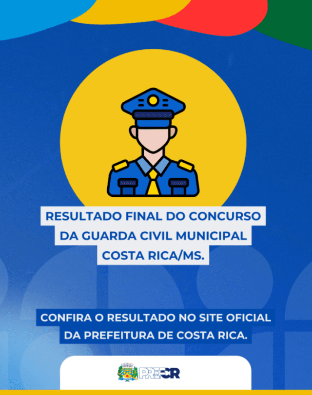 A Prefeitura de Costa Rica publicou, por meio do Edital nº 028/2026, o resultado final do Concurso Público nº 01/2025 para a formação da Guarda Civil Municipal. O documento foi divulgado pela empresa organizadora Fronte Concursos e Projetos Ltda., com a aquiescência do Executivo Municipal, encerrando todas as etapas do certame.
