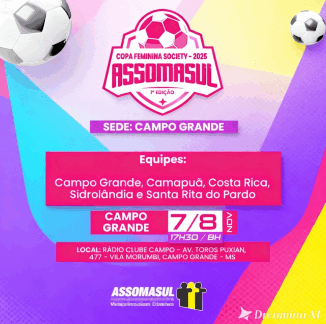 Com a realização da 1ª Copa Feminina Society, a Assomasul reafirma seu compromisso com o esporte e a integração entre os municípios, fortalecendo o protagonismo das mulheres também nos gramados. A participação de Costa Rica nesse evento é um passo significativo para a promoção do esporte feminino e para a valorização das mulheres no ambiente público.