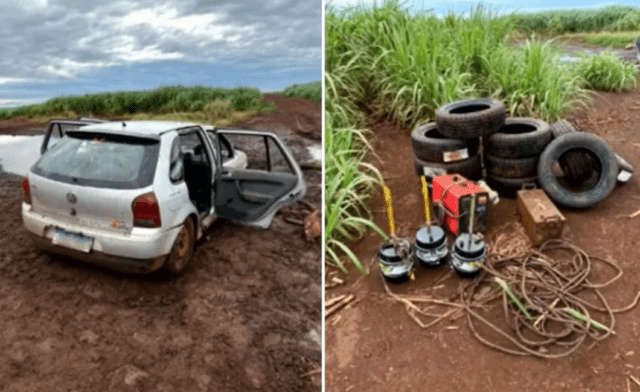 O caso aconteceu na quinta-feira (11). A corporação explicou que a PM foi acionada por servidores da usina que suspeitaram do furto. No local, os policiais começaram a fazer buscas pelos suspeitos, até eles serem encontrados tentando desatolar o carro.