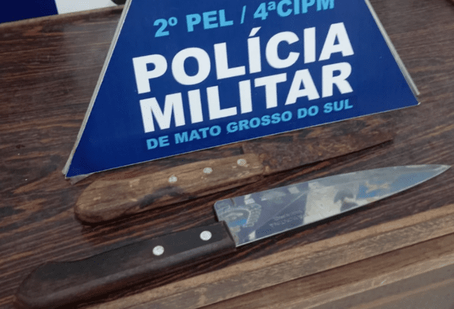 Diante da situação, foi feita a entrada na residência e o autor localizado com a faca na mão, sendo necessário o uso de instrumento de menor potencial ofensivo para conter a resistência do autor e encaminhá-lo para a Delegacia de Polícia para as providências cabíveis.
