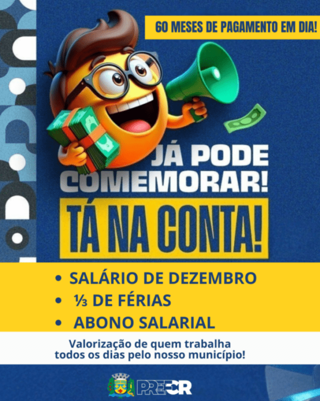 A Prefeitura de Costa Rica, por meio da Secretaria de Administração, Finanças, Planejamento, Receita e Controle, efetuou nesta quarta-feira, 17 de dezembro de 2025, o pagamento do abono de fim de ano no valor de R$ 1 mil, do 1/3 de férias e do salário referente ao mês de dezembro para 1.085 servidores públicos municipais, com algumas exceções previstas em leis e contratos. A antecipação do pagamento, inicialmente prevista para a próxima segunda-feira (22), foi anunciada pelo prefeito delegado Cleverson Alves dos Santos e recebida como uma importante medida de valorização do funcionalismo público.